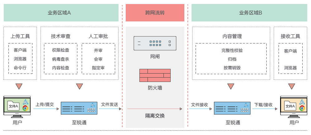 支持多种跨区架构传输,用户权限灵活划分,轻松应对复杂业务环境
