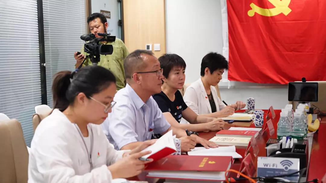 北京市委社工委督查组调研员姚远、干部李娜娜、海淀区花园路街道党工委副书记李江、组织部部长梁微霞听取志翔科技党建工作汇报。